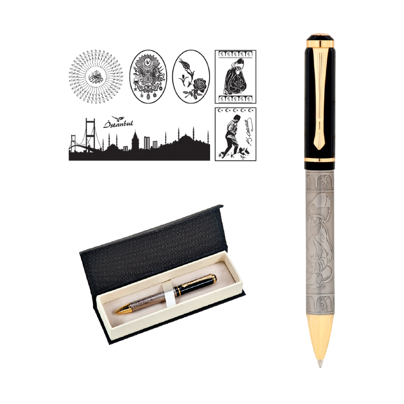 Metal Kabartmalı Roller - Tükenmez Kalem Seti