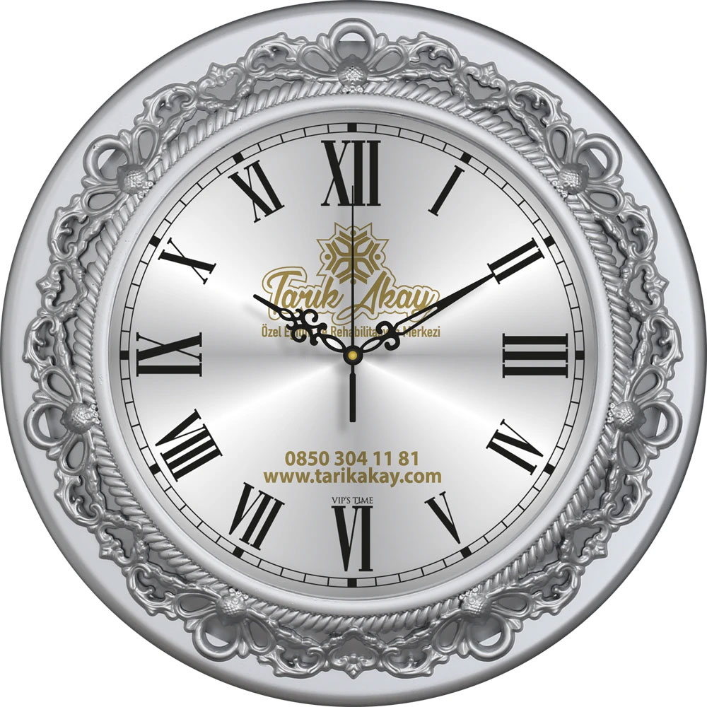 - Ebat: 35 cm * Çerçeve: Plastik * Kadran: Metal * Saniye: Akar * Cam: Mineral * Baskı: Serigrafi, UV * Koli Adeti: 20