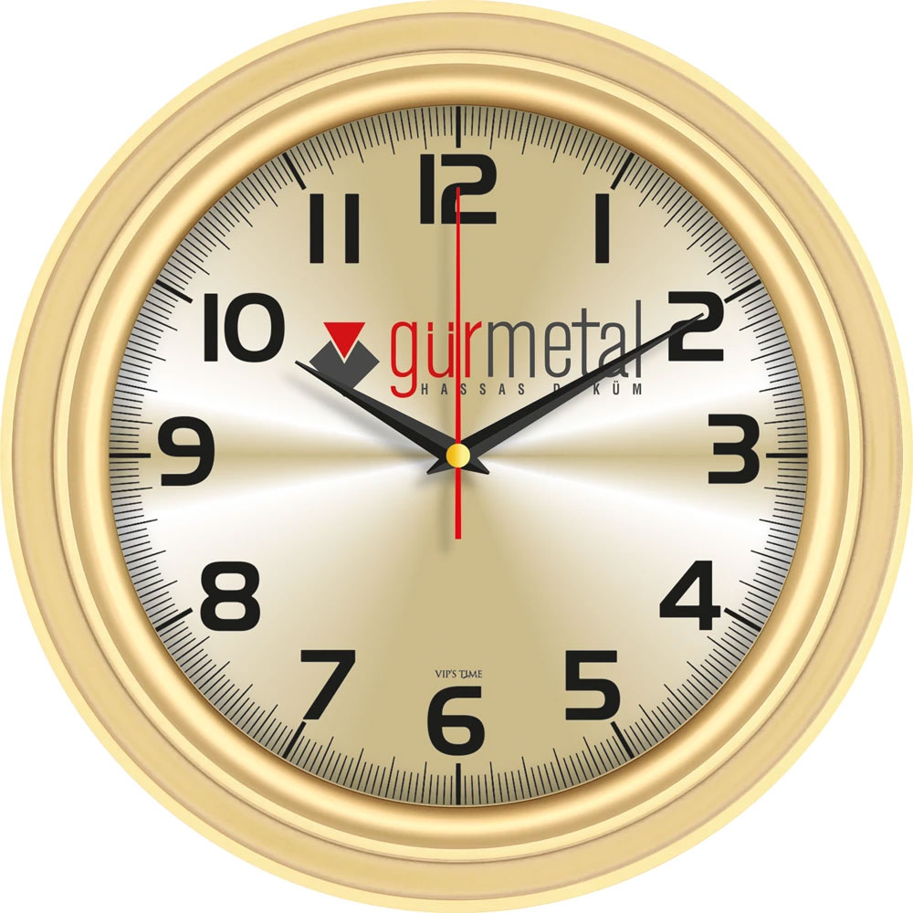 - Ebat: 32 cm * Çerçeve: Plastik * Kadran: Metal * Saniye: Akar * Cam: Mineral * Baskı: Serigrafi, UV * Koli Adeti: 20