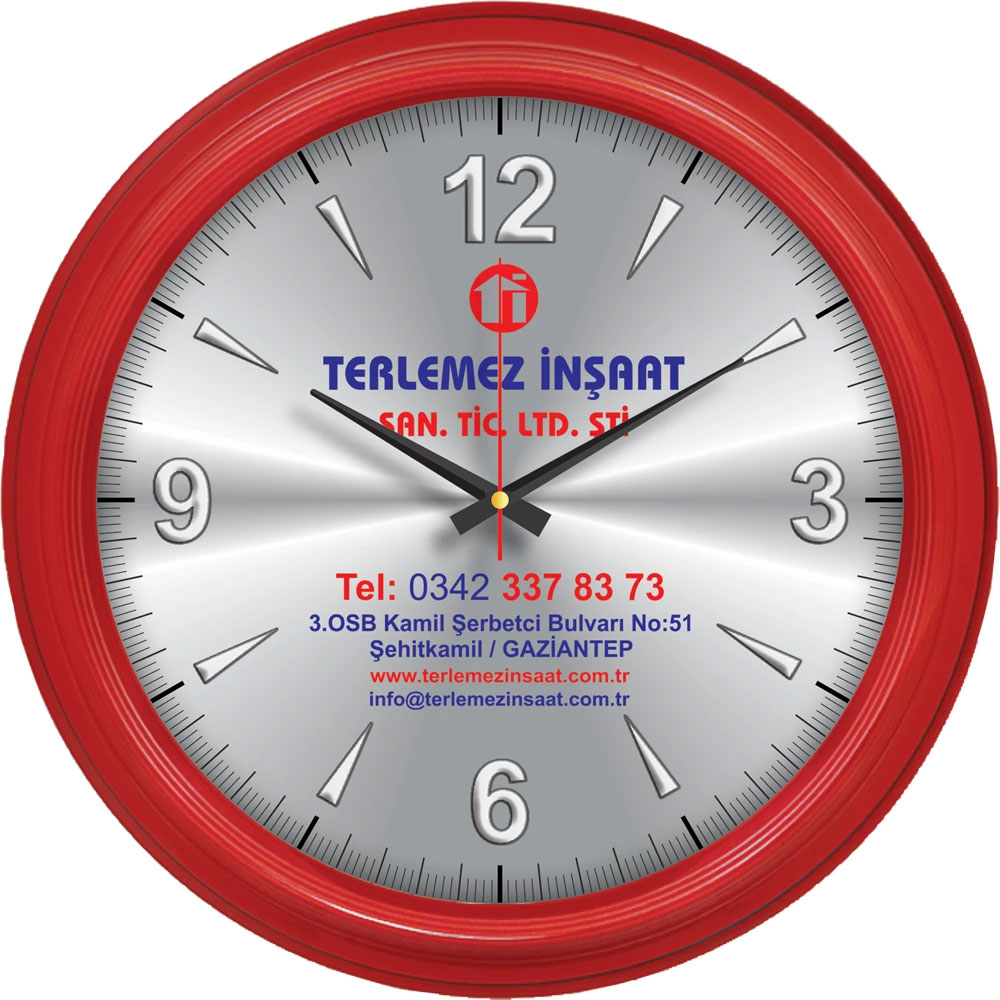 - Ebat: 46 cm * Çerçeve: Plastik * Kadran: Metal * Saniye: Akar * Cam: Mineral * Baskı: Serigrafi, UV * Koli Adeti: 10