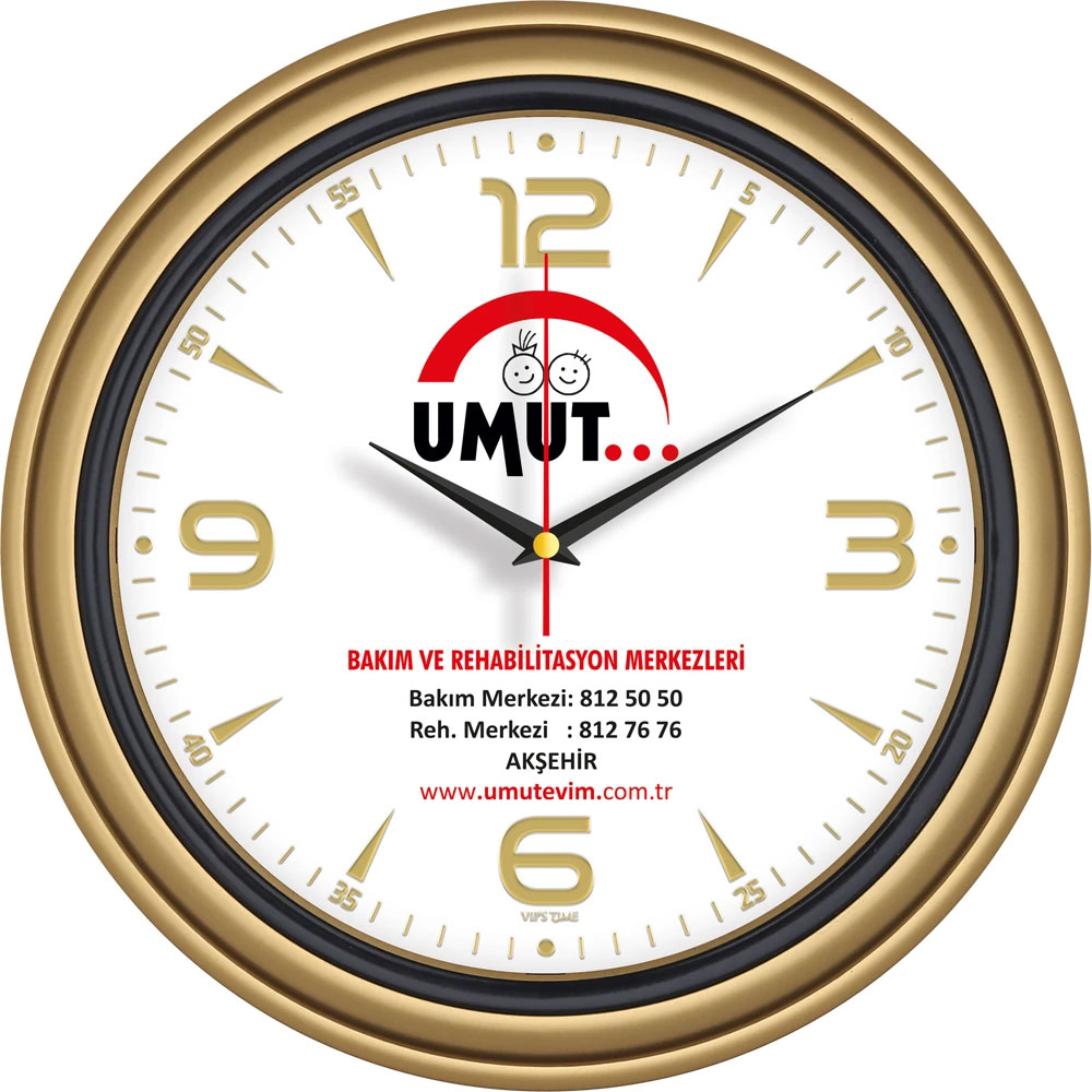 - Ebat: 34 cm * Çerçeve: Plastik * Kadran: Bristol * Saniye: Akar * Cam: Mineral * Baskı: Ofset, Dijital * Koli Adeti: 20 * Not: Altın Varak kadranlar diğer renklerede uygulanabilir.