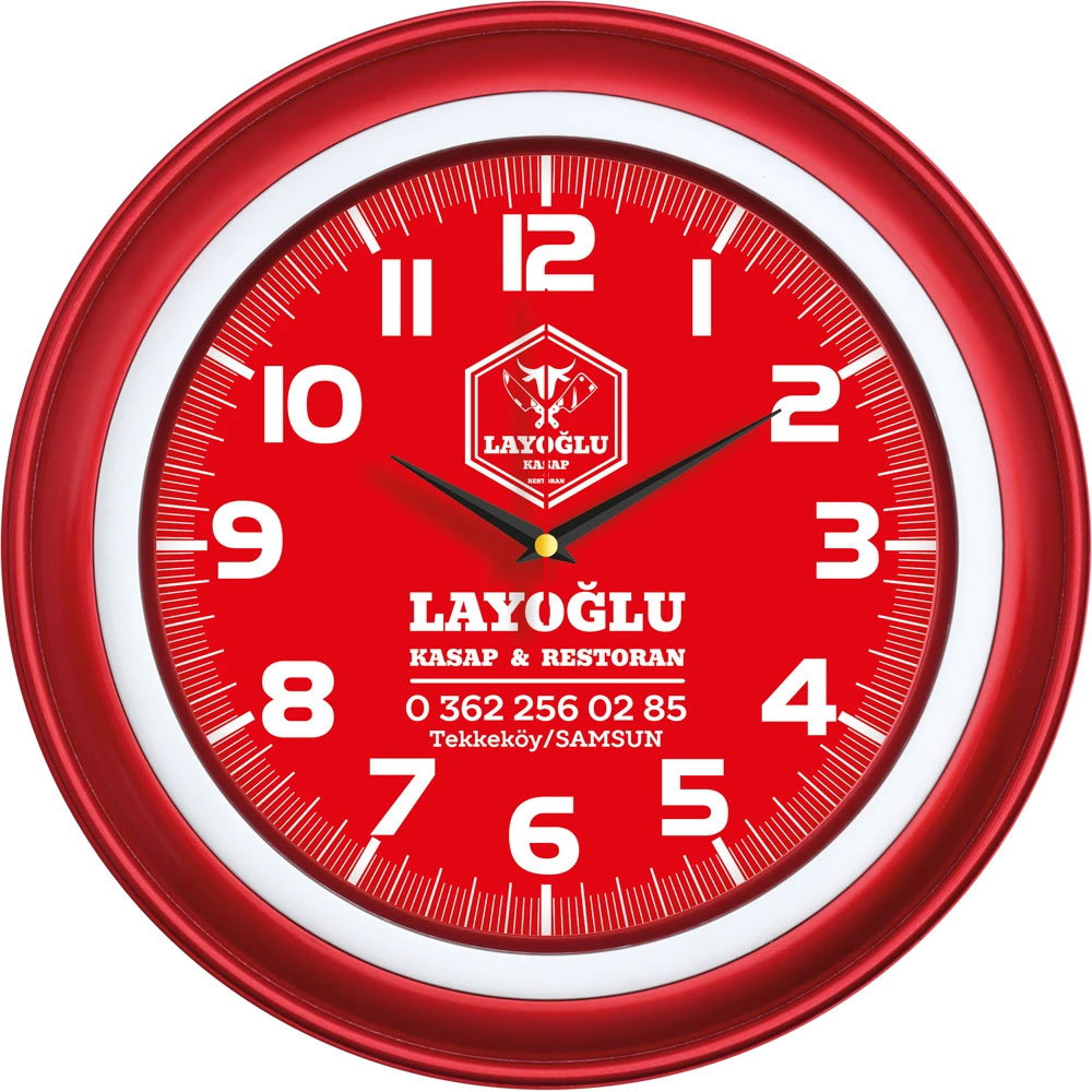 - Ebat: 40 cm * Çerçeve: Plastik * Kadran: Bristol * Saniye: Akar * Cam: Mineral * Baskı: Ofset, Dijital * Koli Adeti: 10